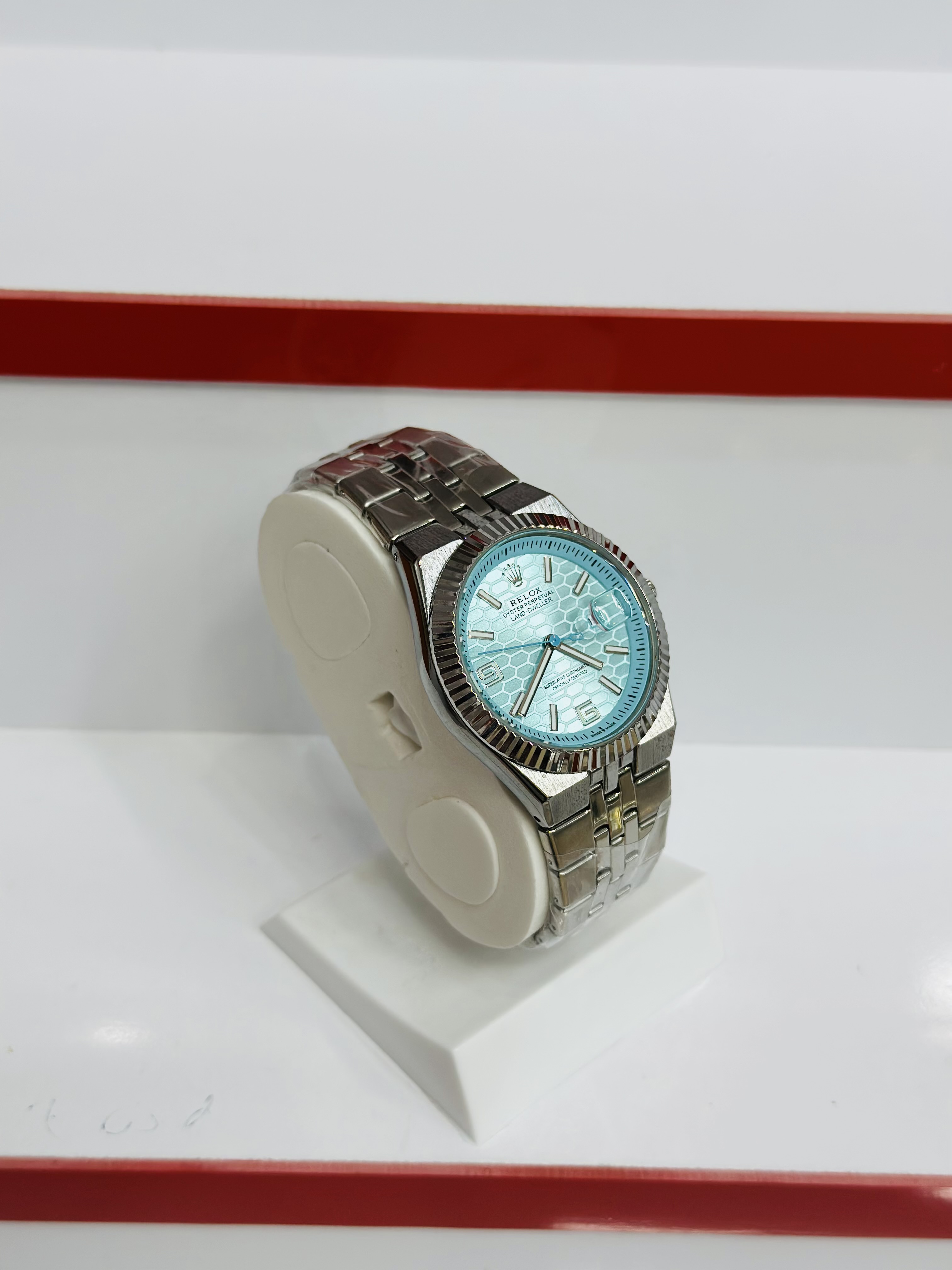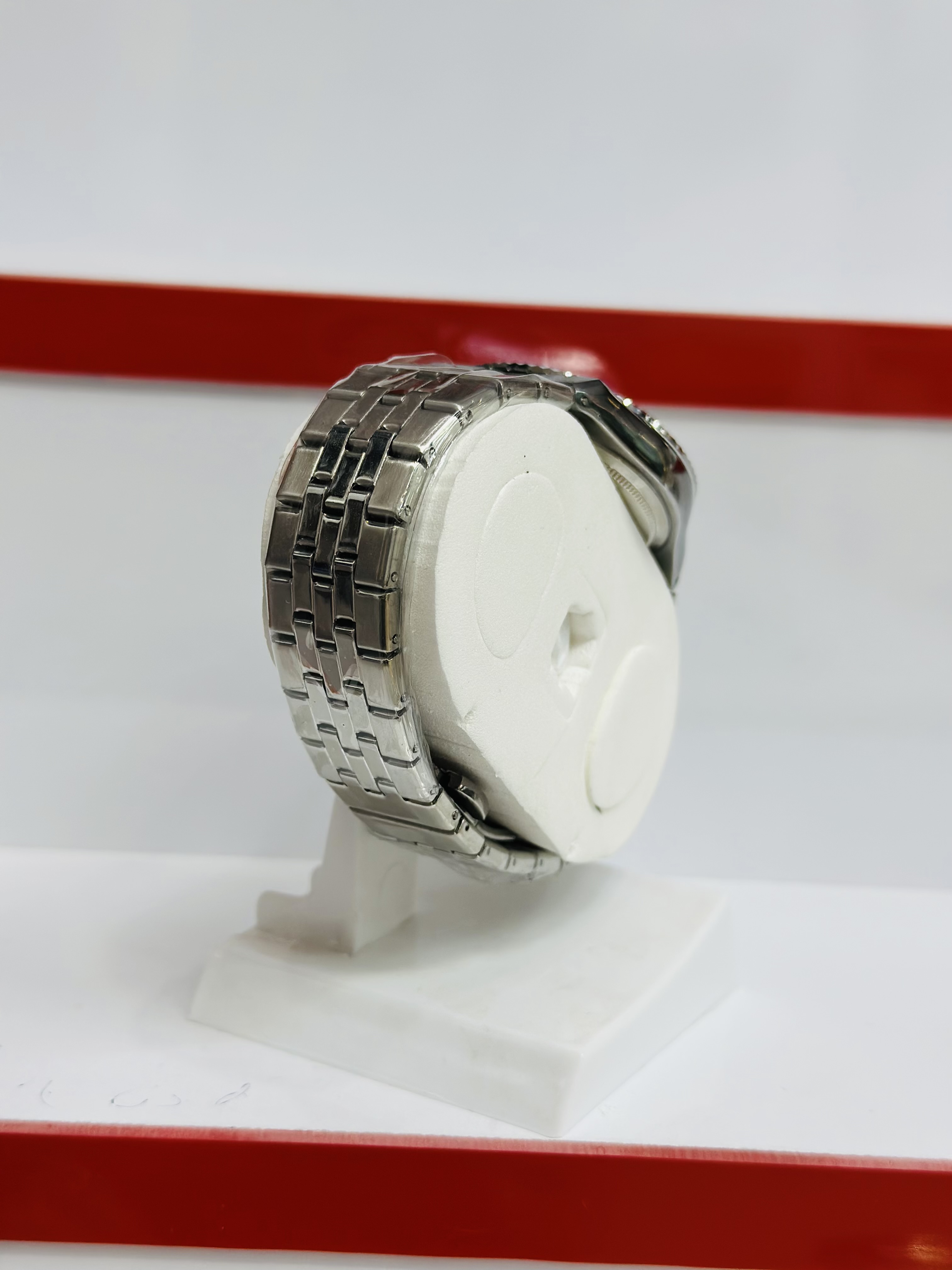ساعت رولکس پوست ماری جنس اصلی مردانه دارای تقویم روز شمار با شیشه ذره بینی جنس استیل رنگ ثابت و ضدآب قفل بند مخفی پروانه ای بند قابل کوتاه شدن موتور اصلی قابل تعویض