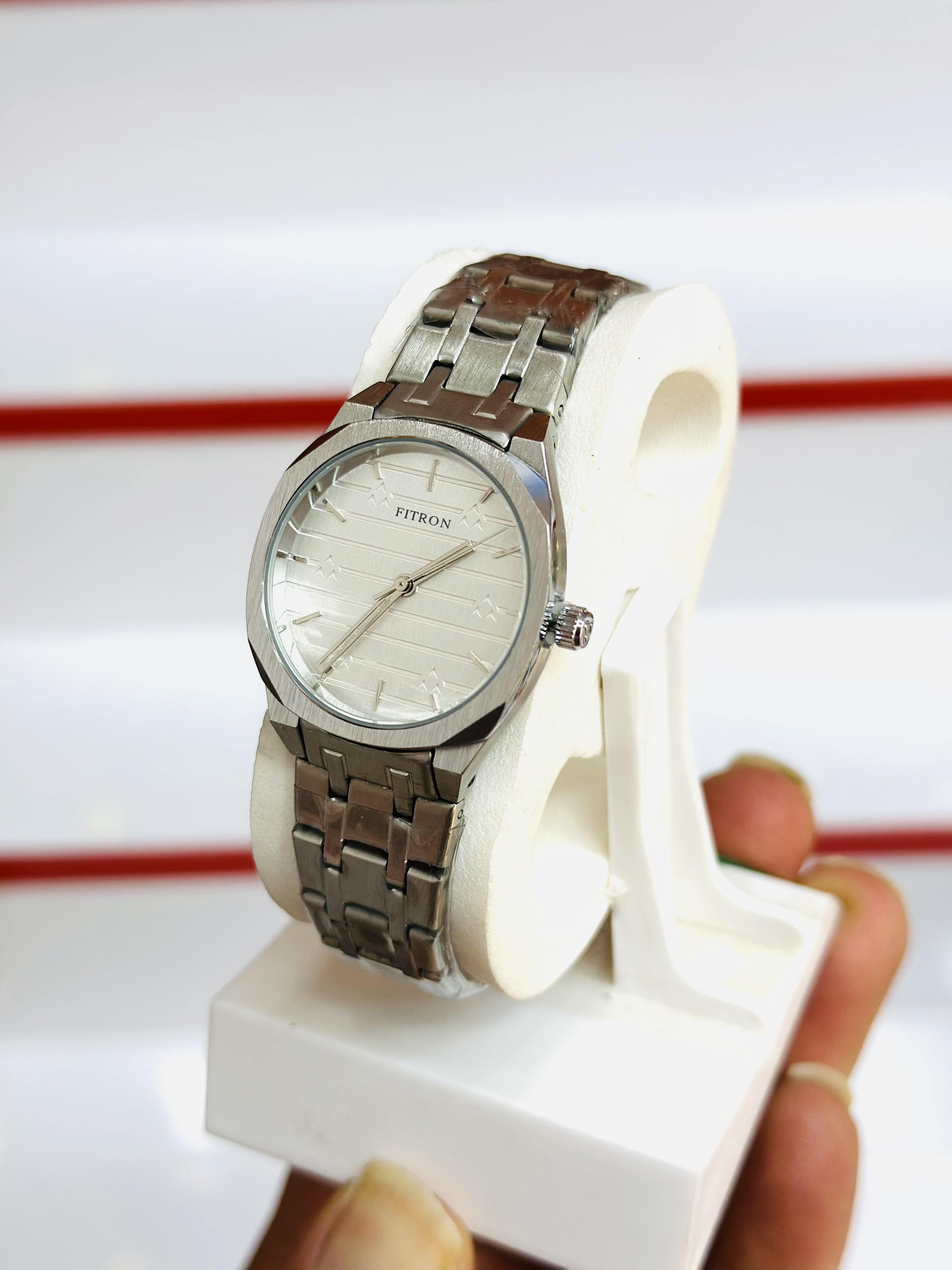 ساعت زنانه موتور ژاپن شرکت فیترون FITRON جنس استیل رنگ ثابت و ضدآب قفل بند کلیپسی بند تو پر موتور ژاپن اصلی بند ساعت قابل کوچک شدن