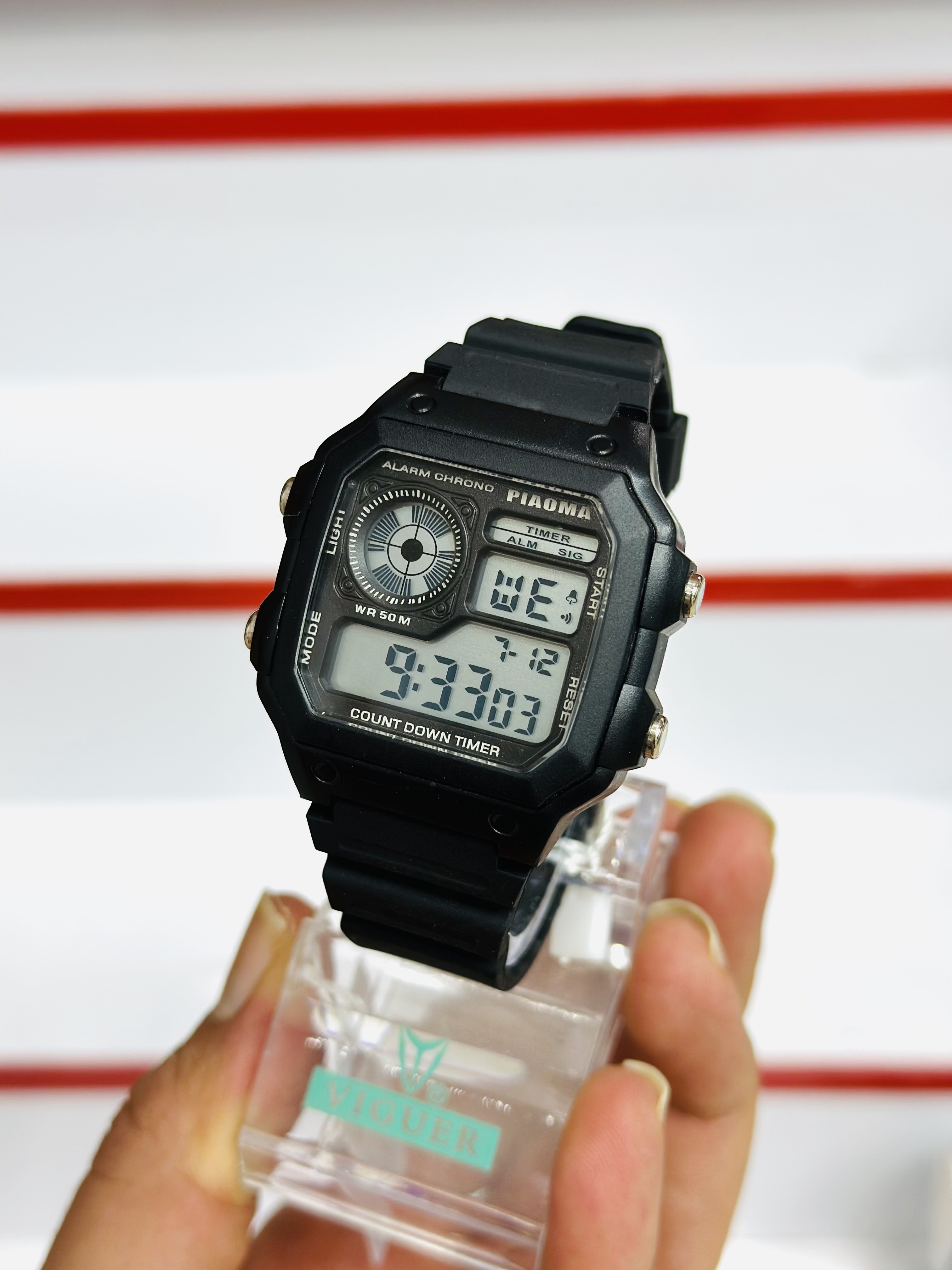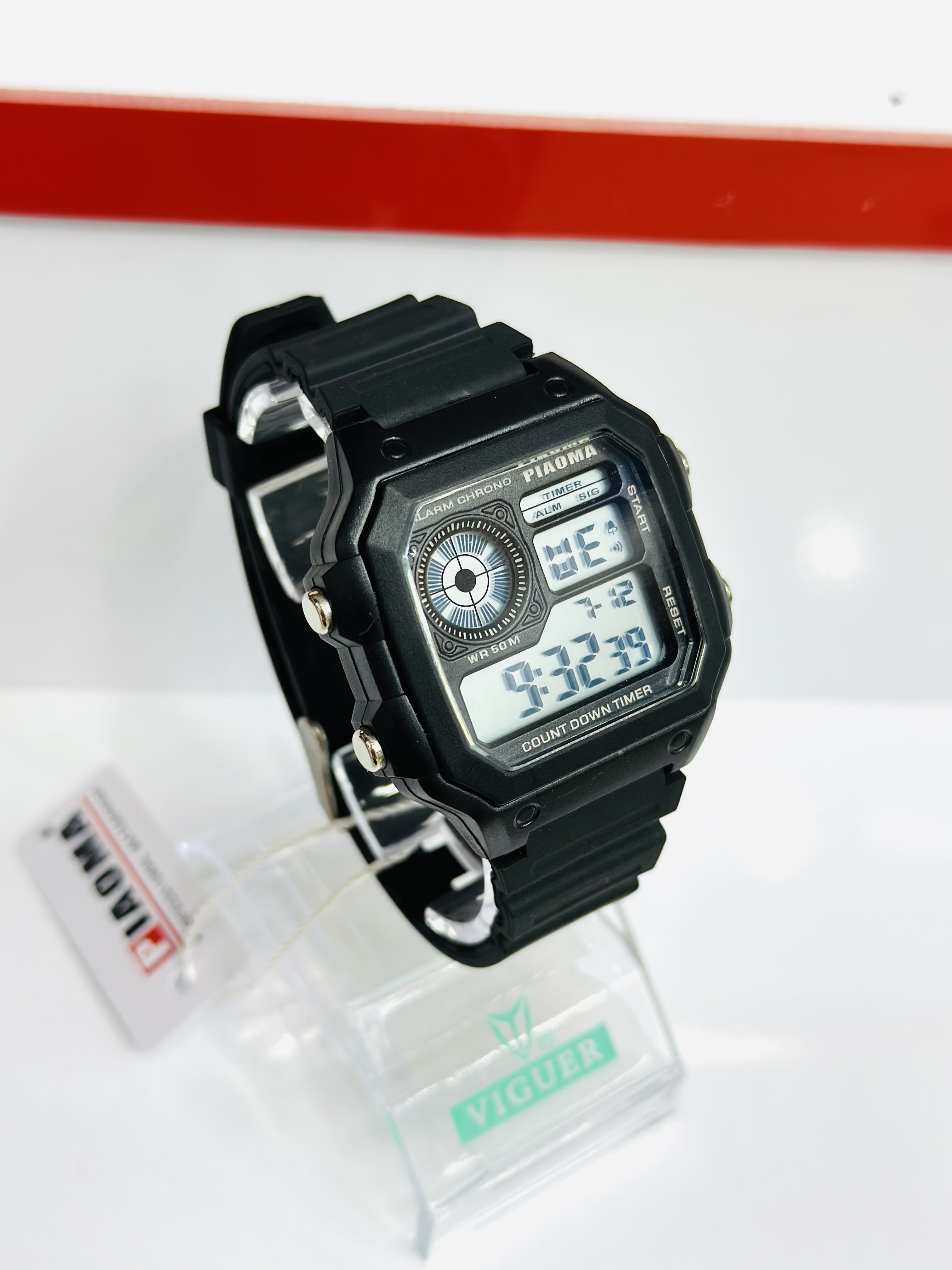 ساعت کامپیوتری دیجیتالی پیاما PIAOMA صد در صد ضدآب(غواصی) بند سیلیکونی چراغ دار نمایش ساعت و تاریخ و کرنومتر موتور اصلی