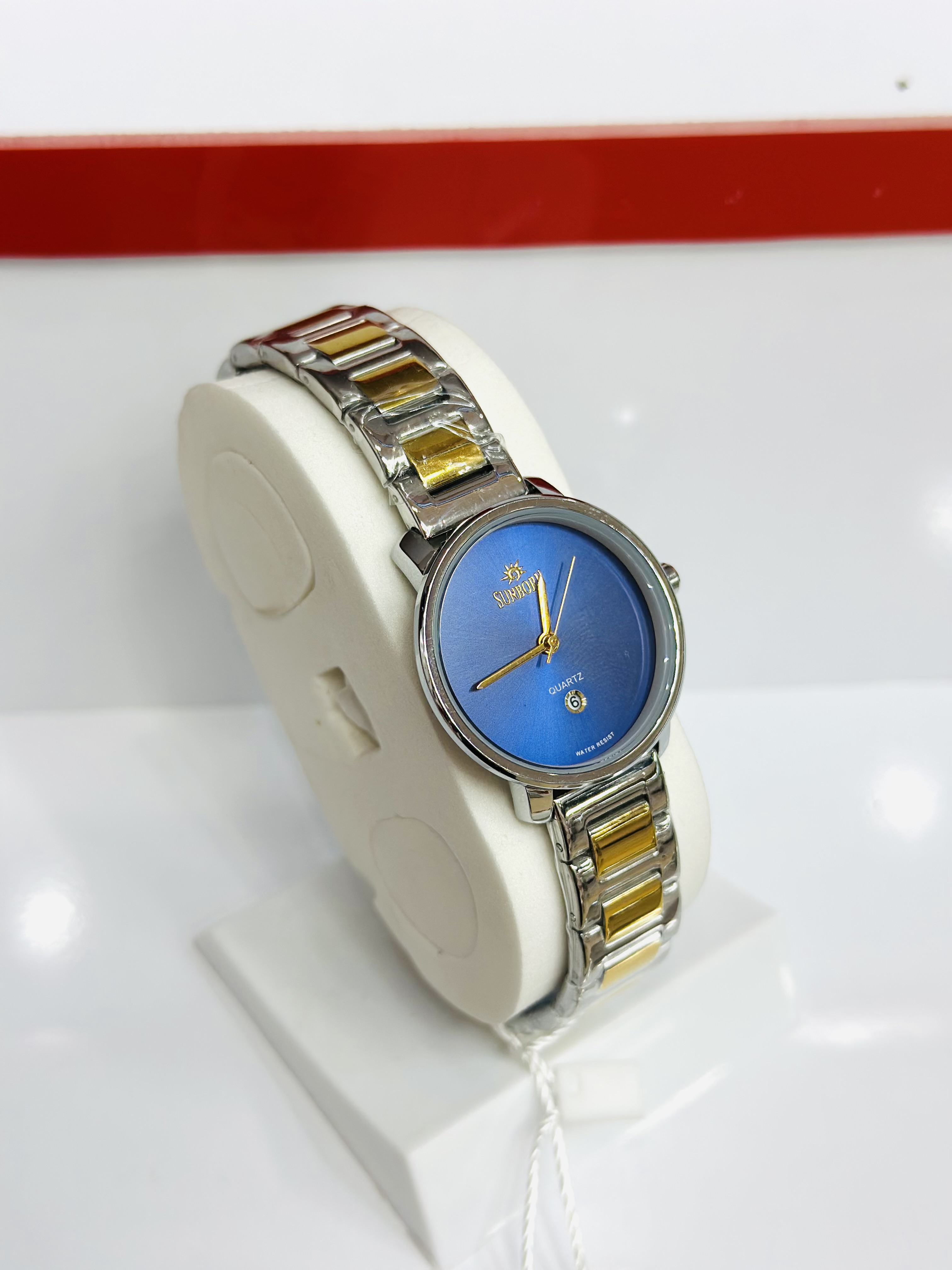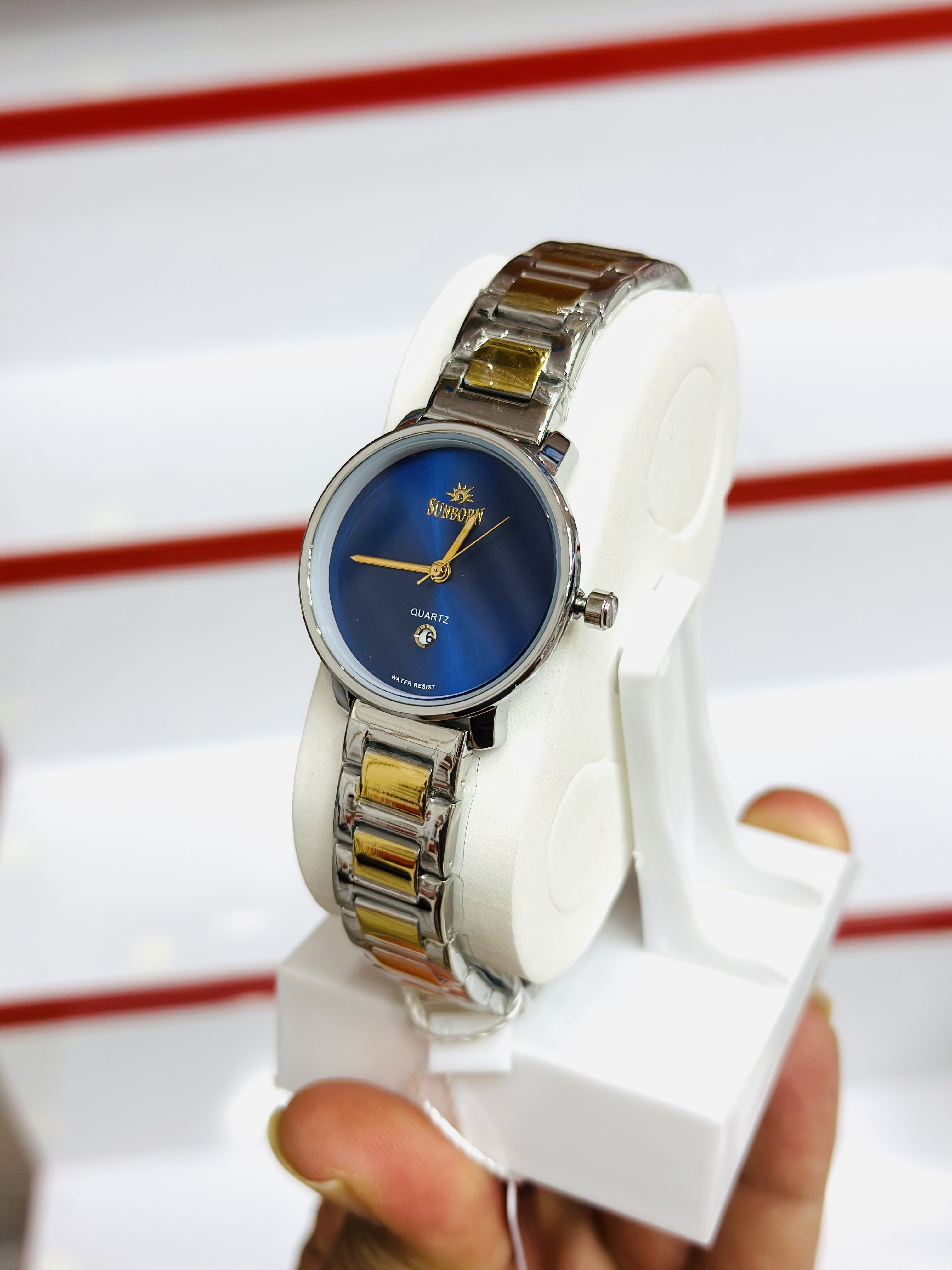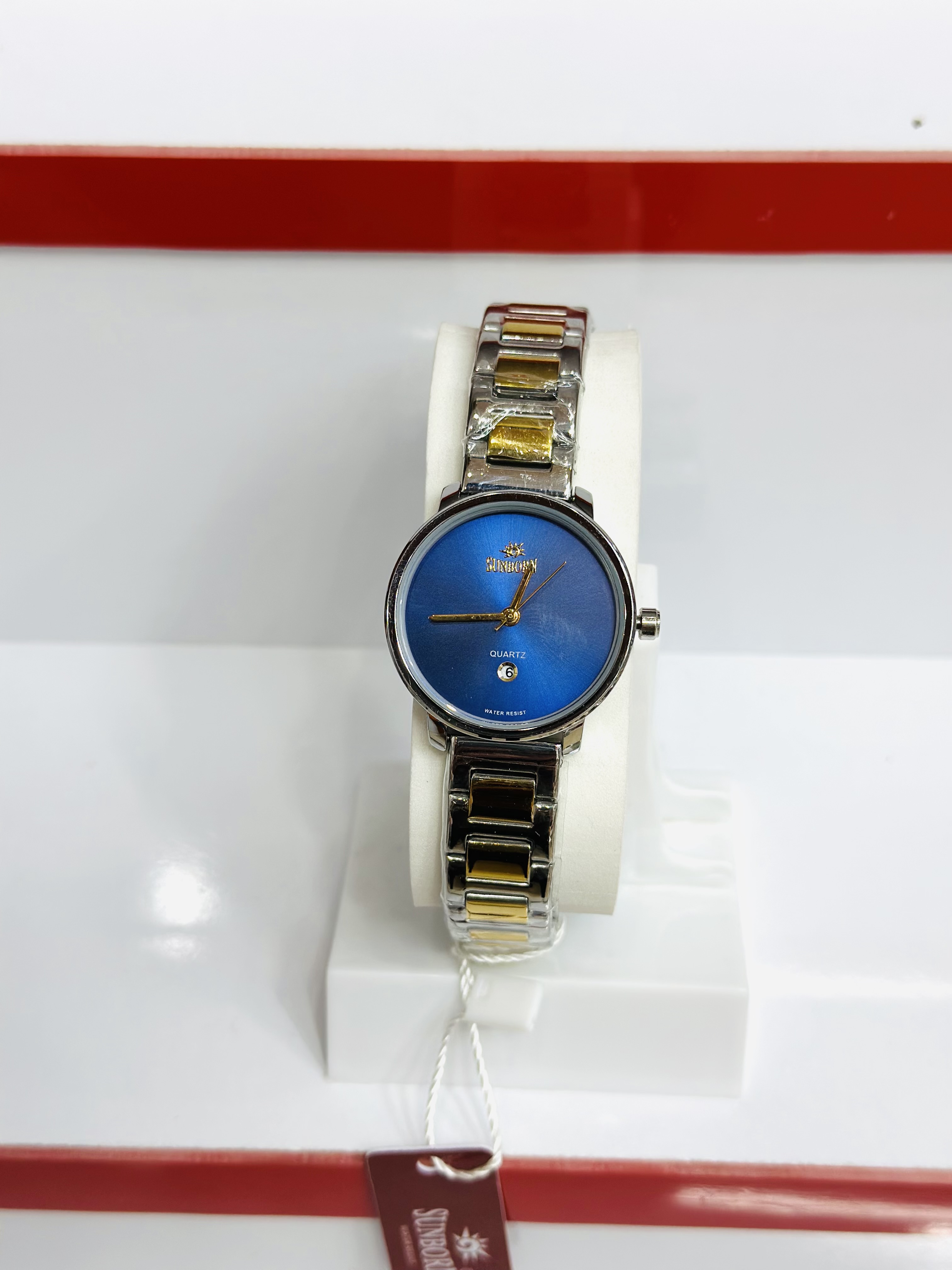 سانبورن زنانه بند استیل(SUNBORN) دارای تقویم جنس رنگ ثابت و ضدآب قفل بند اصلی پروانه ای موتور اصلی قابل تعویض بند قابل کوچک شدن