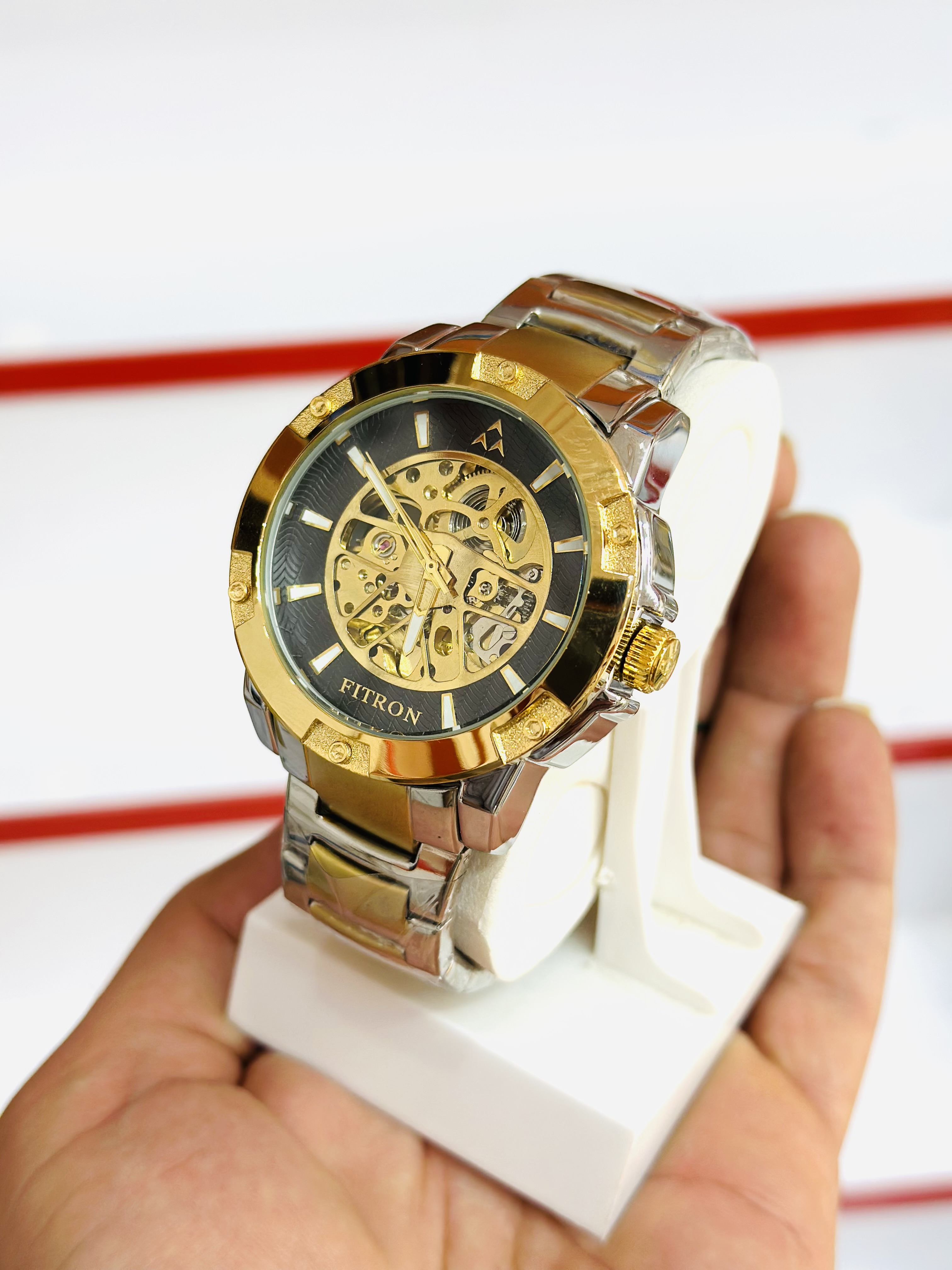 ساعت فیترون اتوماتیک مردانه جنس استیل رنگ ثابت و ضدآب موتور ژاپن تمام اتوماتیک بدون باطری قفل بند کلیپسی